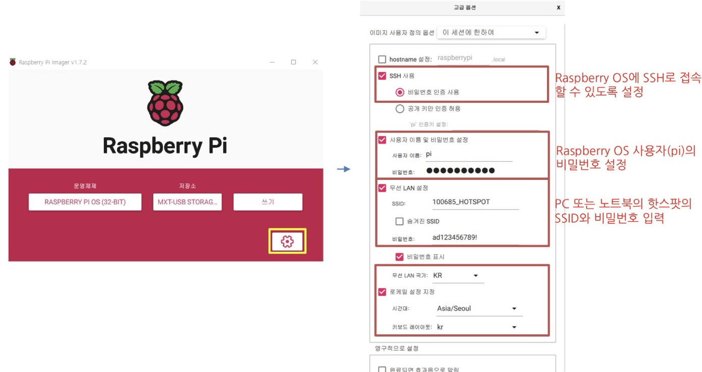 2. 라즈베리파이의 사용자 이름@ip주소 대입 예) pi@192.168.0.5