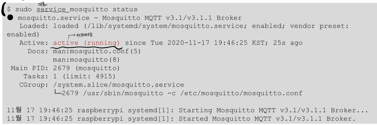 그럴 때, pip uninstall을 진행하여 Mosquitto를 제거하고 다시 install하니 active상태로 되었었다.