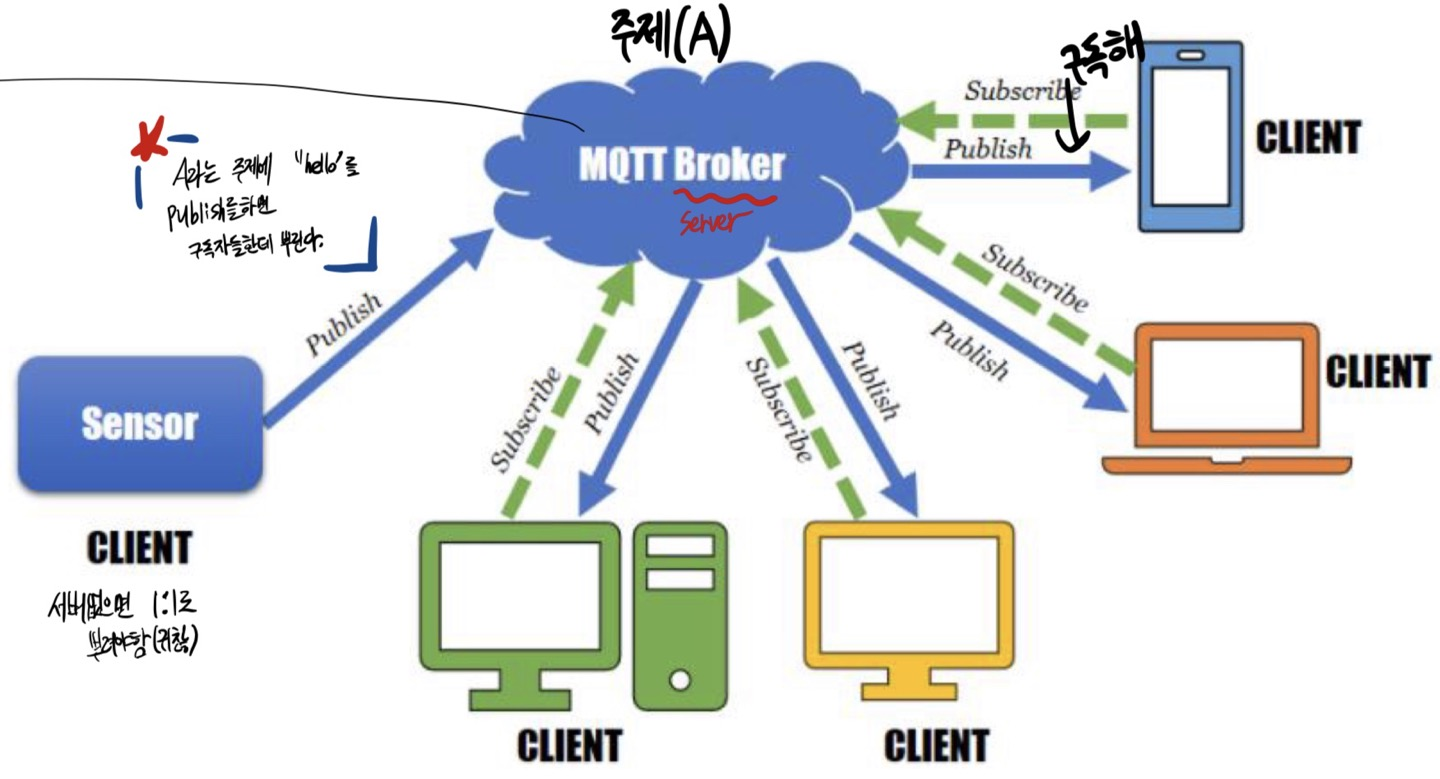 이처럼 MQTT는 broadcast통신을 이용합니다.